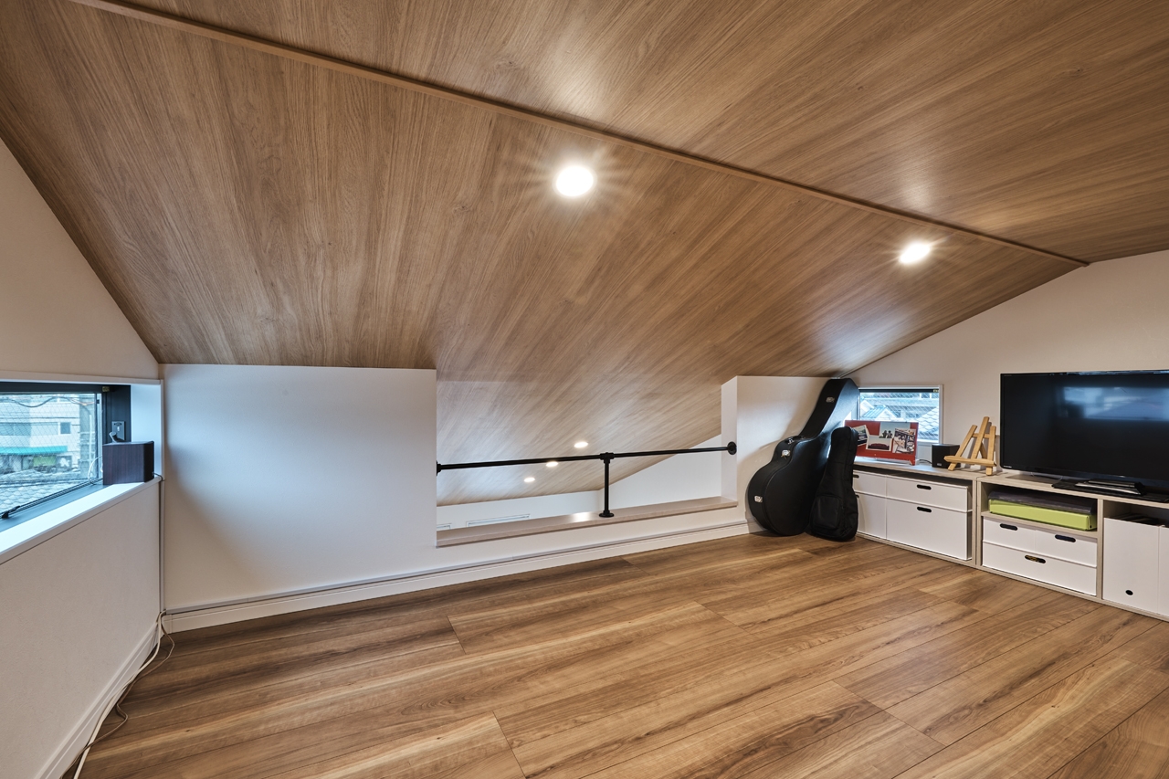 限られた面積を有効に使うため、廊下や階段をただの通路ではなく「空間の一部」としてデザイン。