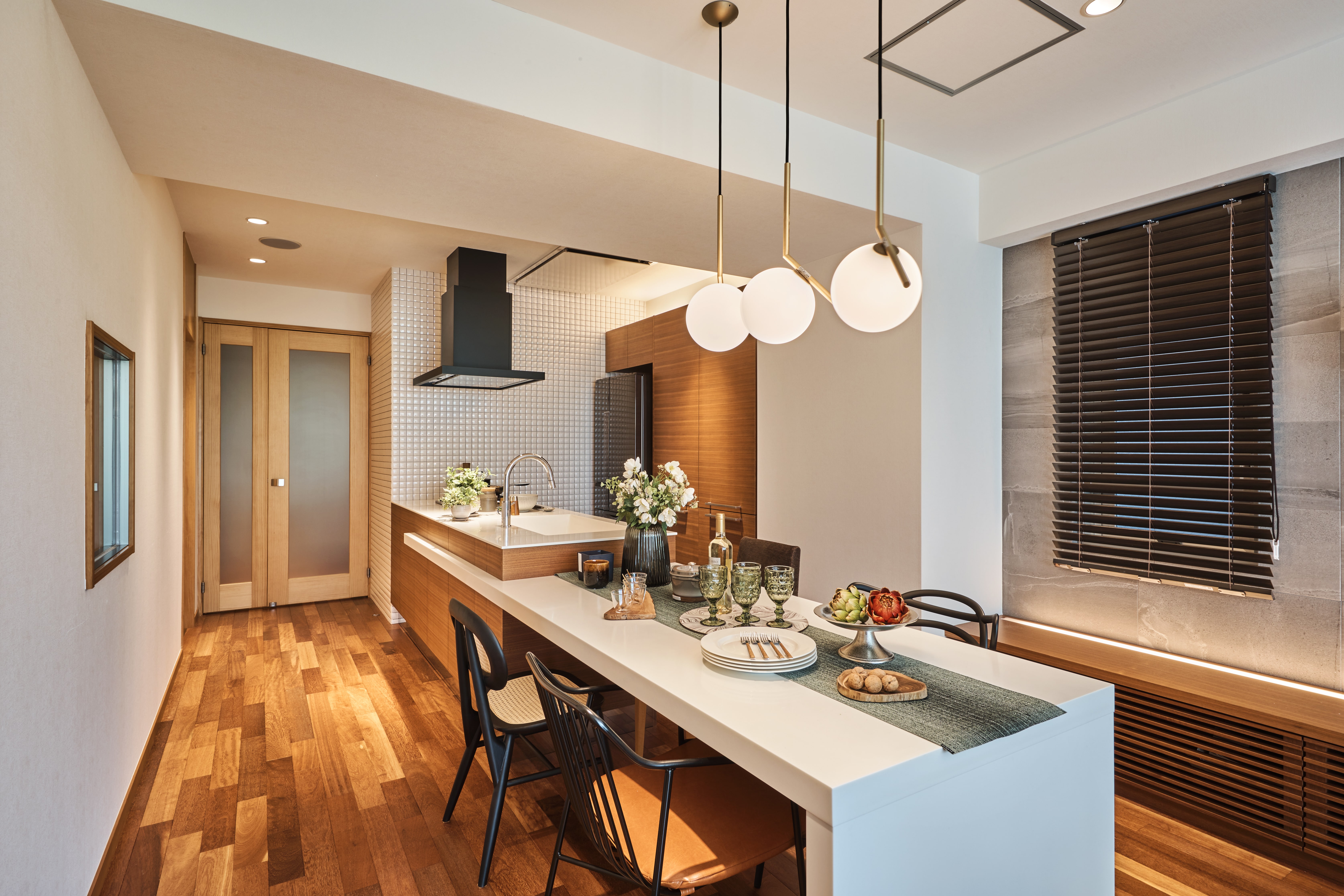 料理・配膳・片付けがスムーズで、家族が自然に集まる動線に。